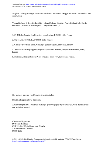 Surgical training through simulation dedicated to French Ob-gyn residents. Evaluation and satisfaction.
