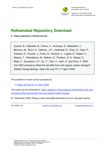 - Auteurs : Bertrand GuenetBenoit GabrielleClaire ChenuDominique ArrouaysJérôme BalesdentMartial BernouxElisa BruniJean-Pierre CalimanRémi CardinaelSongchao ChenPhilippe CiaisDominique DesboisJulien FouchéStefan FrankCatherine HénaultEmanuele LugatoVictoria NaipalThomas NesmeMichael ObersteinerSylvain PellerinDavid PowlsonDaniel RasseFrédéric ReesJean-François SoussanaYang SuHanqin TianHugo ValinFeng Zhou