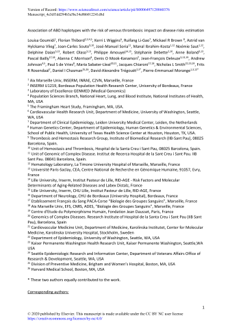 - Auteurs : Louisa GoumidiFlorian ThibordKerri WigginsRuifang Li-GaoMichael BrownAstrid van Hylckama VliegJuan Carlos SoutoJose Manuel SoriaManal Ibrahim-KostaNoémie SautDelphine Daian-BacqRobert OlasoPhillippe AmouyelStéphanie DebetteAnne BolandPascal BaillyAlanna MorrisonDennis Mook-KanamoriJean‐françois DeleuzeAndrew JohnsonPaul de VriesMaria Sabater-LlealChiaroni JacquesNicholas SmithFrits RosendaalDaniel ChasmanDavid-Alexandre TregouetPierre-Emmanuel Morange