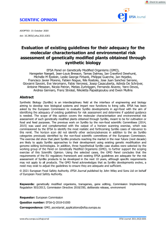 Evaluation of existing guidelines for their adequacy for the molecular characterisation and environmental risk assessment of genetically modified plants obtained through synthetic biology