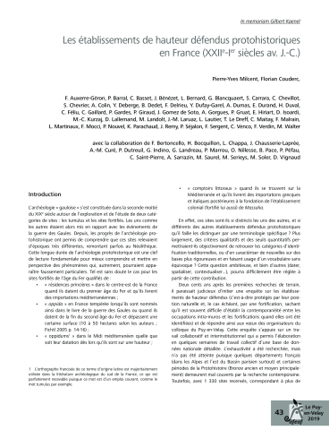 Les établissements de hauteur défendus protohistoriques en France (XXIIe-Ier siècles av. J.-C.)