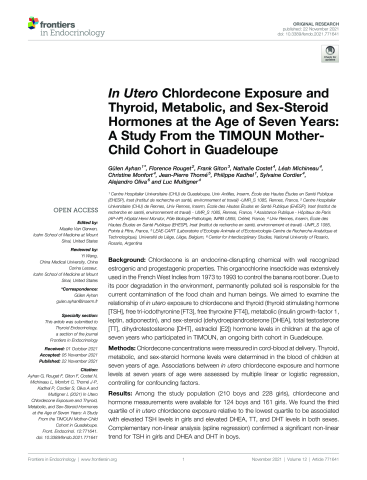 In Utero Chlordecone Exposure and Thyroid, Metabolic, and Sex-Steroid Hormones at the Age of Seven Years: A Study From the TIMOUN Mother-Child Cohort in Guadeloupe