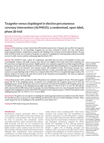 Ticagrelor versus clopidogrel in elective percutaneous coronary intervention (ALPHEUS): a randomised, open-label, phase 3b trial
