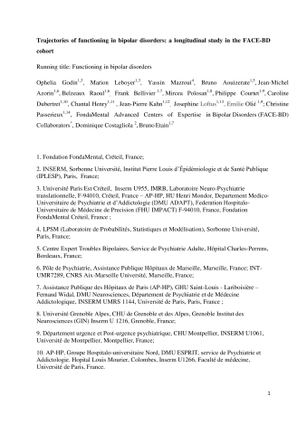 Ophélia GodinMarion LeboyerYassin MazrouiBruno AouizerateJean- Michel AzorinRaoul BelzeauxFrank BellivierMircea PolosanPhilippe CourtetCaroline DubertretChantal HenryJean-Pierre KahnJosephine LoftusEmilie OliéChristine PasserieuxDominique CostagliolaB Etain
