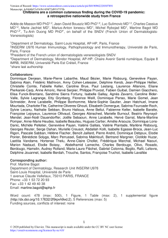 - Publié dans Journal of The American Academy of Dermatology le 26/10/2020