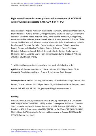 High mortality rate in cancer patients with symptoms of COVID-19 with or without detectable SARS-COV-2 on RT-PCR