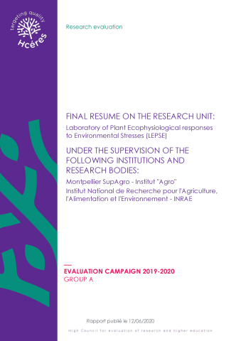 Final resume on the research on the research unit Laboratory of Plant Ecophysiological responses to Environmental Stresses (LEPSE) under the supervision of the following institutions and research bodies, Montpellier SupAgro - Institut "Agro", Institut National de Recherche pour l'Agriculture, l'Alimentation et l'Environnement - INRAE