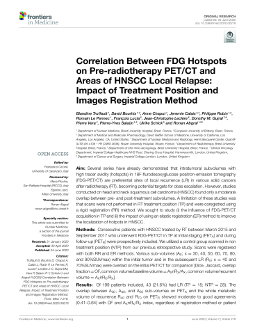 Correlation Between FDG Hotspots on Pre-radiotherapy PET/CT and Areas of HNSCC Local Relapse : Impact of Treatment Position and Images Registration Method