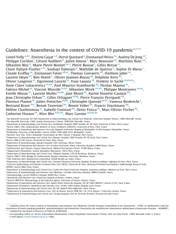 Guidelines: Anaesthesia in the context of COVID-19 pandemic