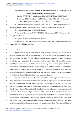 Environmental and climatic controls of the clay mineralogy of Albian deposits in the Paris and Vocontian basins (France).