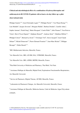 Philippe GautretJean-Christophe LagierPhilippe Parolavan Thuan HoangLine MeddebJacques SevestreMorgane MailheBarbara DoudierCamille AubrySophie AmranePiseth SengMarie HocquartCarole EldinJulie FinanceVera Esteves VieiraHervé Tissot-DupontStéphane HonoréAndreas SteinMatthieu MillionPhilippe ColsonBernard La ScolaVéronique VeitAlexis JacquierJean-Claude DeharoMichel DrancourtPierre Edouard FournierJean-Marc RolainPhilippe BrouquiDidier Raoult