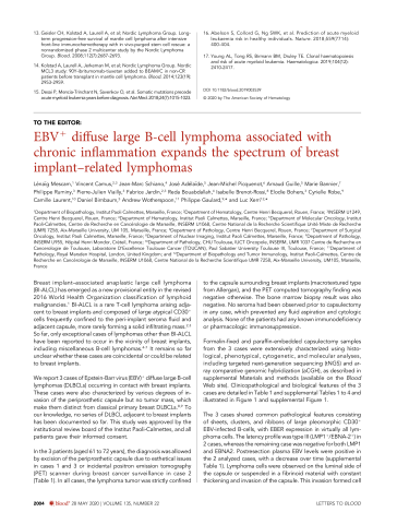EBV+ diffuse large B-cell lymphoma associated with chronic inflammation expands the spectrum of breast implant-related lymphomas