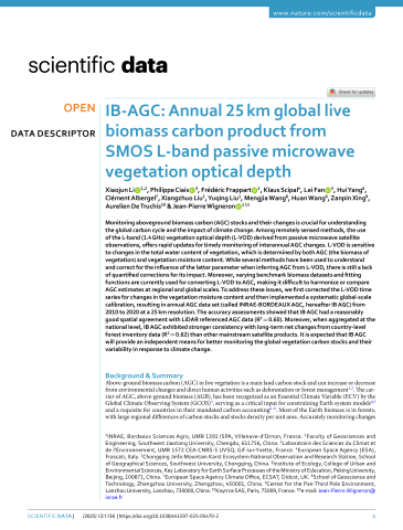 - Auteurs : Xiaojun LiPhilippe CiaisFrédéric FrappartKlaus ScipalSassan S SaatchiHui YangClément AlbergelXiangzhuo LiuYuqing LiuWigneron J.-P.Huan WangZanpin XingAurelien de TruchisJean-Pierre Wigneron