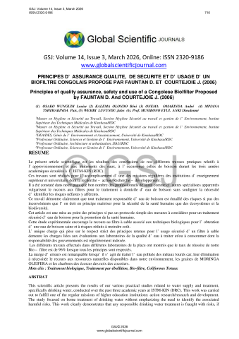 PRINCIPES D’ ASSURANCE QUALITE, DE SECURITE ET D’ USAGE D’ UN BIOFILTRE CONGOLAIS PROPOSE PAR FAUNTAN D. ET COURTEJOIE J. (2006)