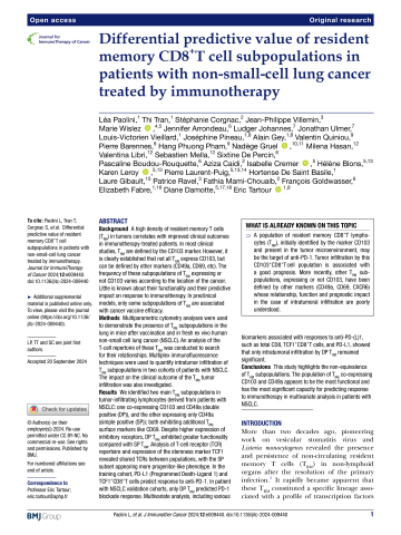 - Auteurs : Léa PaoliniThi TranStéphanie CorgnacJean-Philippe VilleminMarie WislezJennifer ArrondeauLudger JohannesJonathan UlmerLouis-Victorien VieillardJoséphine PineauAlain GeyValentin QuiniouPierre BarennesHang Phuong PhamNadège GruelMilena HasanValentina LibriSebastien MellaSixtine de PercinPascaline Boudou-RouquetteAziza CaidiIsabelle CremerHélène BlonsKaren LeroyPierre Laurent-PuigHortense de Saint BasileLaure GibaultPatrice RavelFathia Mami-ChouaibFrançois GoldwasserElizabeth FabreDiane DamotteÉric Tartour