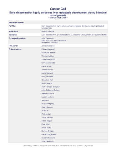 - Auteurs : Zeinab HomayedGuillaume BelthierTinhinan LahlouLaia BassaganyasEmmanuelle SidotPierre GirouxJennifer SeriesLucile BansardFrançois GerbeChenchen PanMoritz NewgerJean Francois BourgauxJulie Guillermet-GuibertMatthieu LacroixLaurent Le CamSilvia FreRachel RidgwayOwen SansomAli ErturkPhilippe JayDaniel HäußlerAchim KrügerZena WerbAndrei TurtoiDamien GregoireFrédéric LagarrigueCaroline BonnansJulie Pannequin