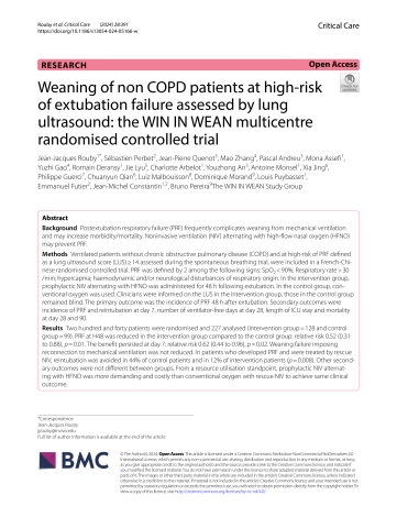 Weaning of non COPD patients at high-risk of extubation failure assessed by lung ultrasound: the WIN IN WEAN multicentre randomised controlled trial