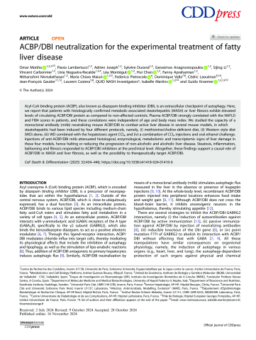 - Auteurs : Omar MotiñoFlavia LambertucciAdrien JosephSylvère DurandGerasimos AnagnostopoulosSijing LiVincent CarbonnierUxía Nogueira-RecaldeLéa MontégutHui ChenFanny AprahamianNitharsshini NirmalathasanMaria Chiara MaiuriFederico PietrocolaDominique VallaCédric LaouénanJean-François GautierLaurent CasteraAnaïs Vallet-PichardTiphaine Vidal-TrécanPauline ManchonValérie ParadisDominique RoulotChristian BoitardBenoit TerrisHélène BihanJean-Baptiste JullaThierry PoynardAngélique BzrustowskiEtienne LargerSébastien CzernichowStanislas PolPierre BedossaChristophe JunotNathalie de PrevilleIsabelle Durand ZaleskiPierre-Emmanuel RautouBernard van BeersMarco DioguardiValérie VilgrainJean-Marie CorreasPhilippe GarteiserJean-Pierre RivelineMark IbbersonIsabelle MartinsGuido Kroemer