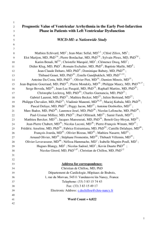 - Auteurs : Nicolas PeschanskiFlorian ZoresJacques BoddaertBénedicte DouayClément DelmasAmaury BroussierDelphine DouilletEmmanuelle BerthelotThomas GilbertCédric Gil-JardinéVincent AuffretLaure JolyJérémy GuénézanMichel GalinierMarion PépinPhilippe Le ConteNicolas GirerdFrédéric RocaMathieu OberlinPatrick JourdainGeoffroy RousseauNicolas LamblinBarbara VilloingFrédéric MouquetXavier DubucsFrançois RoubilleMaxime JonchierRémi SabatierSaïd LaribiMuriel SalvatTahar ChouihedJean-Baptiste Bouillon-MinoisAnthony ChauvinPierrick Le Borgne