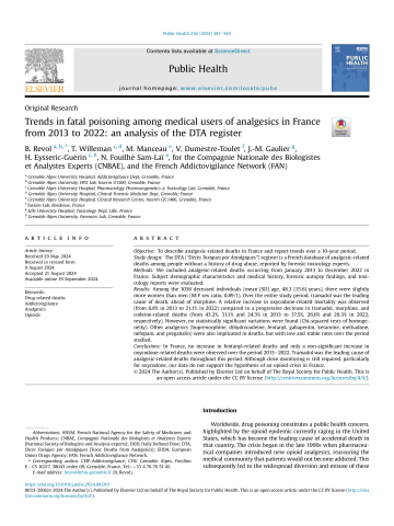 Trends in fatal poisoning among medical users of analgesics in France from 2013 to 2022: an analysis of the DTA register
