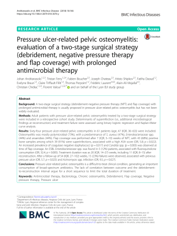 Pressure ulcer-related pelvic osteomyelitis: evaluation of a two-stage surgical strategy (debridement, negative pressure therapy and flap coverage) with prolonged antimicrobial therapy