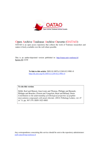 Résumé : Intrinsic tribological properties of lamellar compounds are usually attributed to the presence of van der Waals gaps in their structure through which interlayer interactions are weak. The controlled variation of the distances and interactions between graphene layers by intercalation of electrophilic species in graphite is used in order to explore more deeply the friction reduction properties of low-dimensional compounds. Three graphite intercalation compounds with antimony pentachloride, iron trichloride and aluminium trichloride are studied. Their tribological properties are correlated to their structural parameters, and the interlayer interactions are deduced from ab initio bands structure calculations.