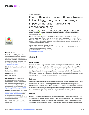Road traffic accident-related thoracic trauma: Epidemiology, injury pattern, outcome, and impact on mortality?A multicenter observational study