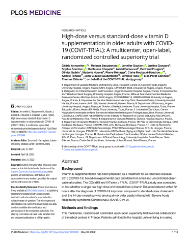 High-dose versus standard-dose vitamin D supplementation in older adults with COVID-19 (COVIT-TRIAL): A multicenter, open-label, randomized controlled superiority trial