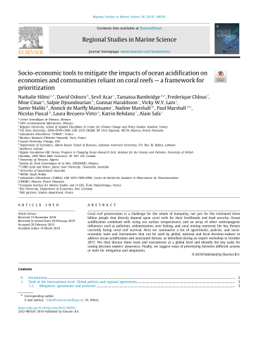 Socio-economic tools to mitigate the impacts of ocean acidification on economies and communities reliant on coral reefs — a framework for prioritization