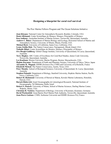 Joan KleypasDenis AllemandKen AnthonyAndrew BakerMichael BeckLynne Zeitlin HaleCaroline HilmiOve Hoegh-GuldbergTerry HughesLes KaufmanHajime KayanneAlexandre MagnanElizabeth McleodPeter MumbyStephen PalumbiRobert H RichmondBaruch RinkevichRobert S SteneckChristian R VoolstraDavid WachenfeldJean-Pierre Gattuso