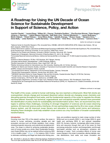 Résumé : The health of the ocean, central to human well-being, has now reached a critical point. Most fish stocks are overexploited, climate change and increased dissolved carbon dioxide are changing ocean chemistry and disrupting species throughout food webs, and the fundamental capacity of the ocean to regulate the climate has been altered. However, key technical, organizational, and conceptual scientific barriers have prevented the identification of policy levers for sustainability and transformative action. Here, we recommend key strategies to address these challenges, including stronger integration of sciences and ocean-observing systems, improved science-policy interfaces, new partnerships supported by a new ocean-climate finance system, and improved ocean literacy and education to modify social norms and behaviors. Adopting these strategies could help establish ocean science as a key foundation of broader sustainability transformations.