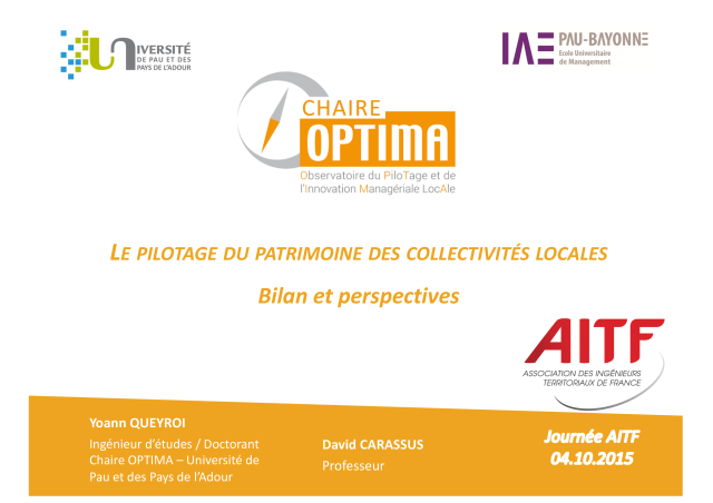 Le pilotage du patrimoine des collectivités locales : bilan et perspectives instrumental et organisationnel