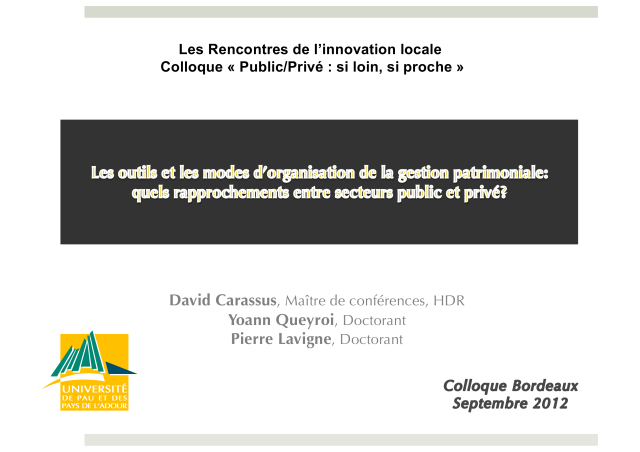 Les outils et les modes d'organisation de la gestion patrimoniale: quels rapprochements entre secteur public et secteur privé ?